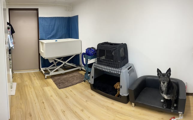 kleinen Raum werden die Hunde gebadet und geföhnt und dürfen anschliessend in gemütlichen Betten und Boxen noch etwas entspannen.